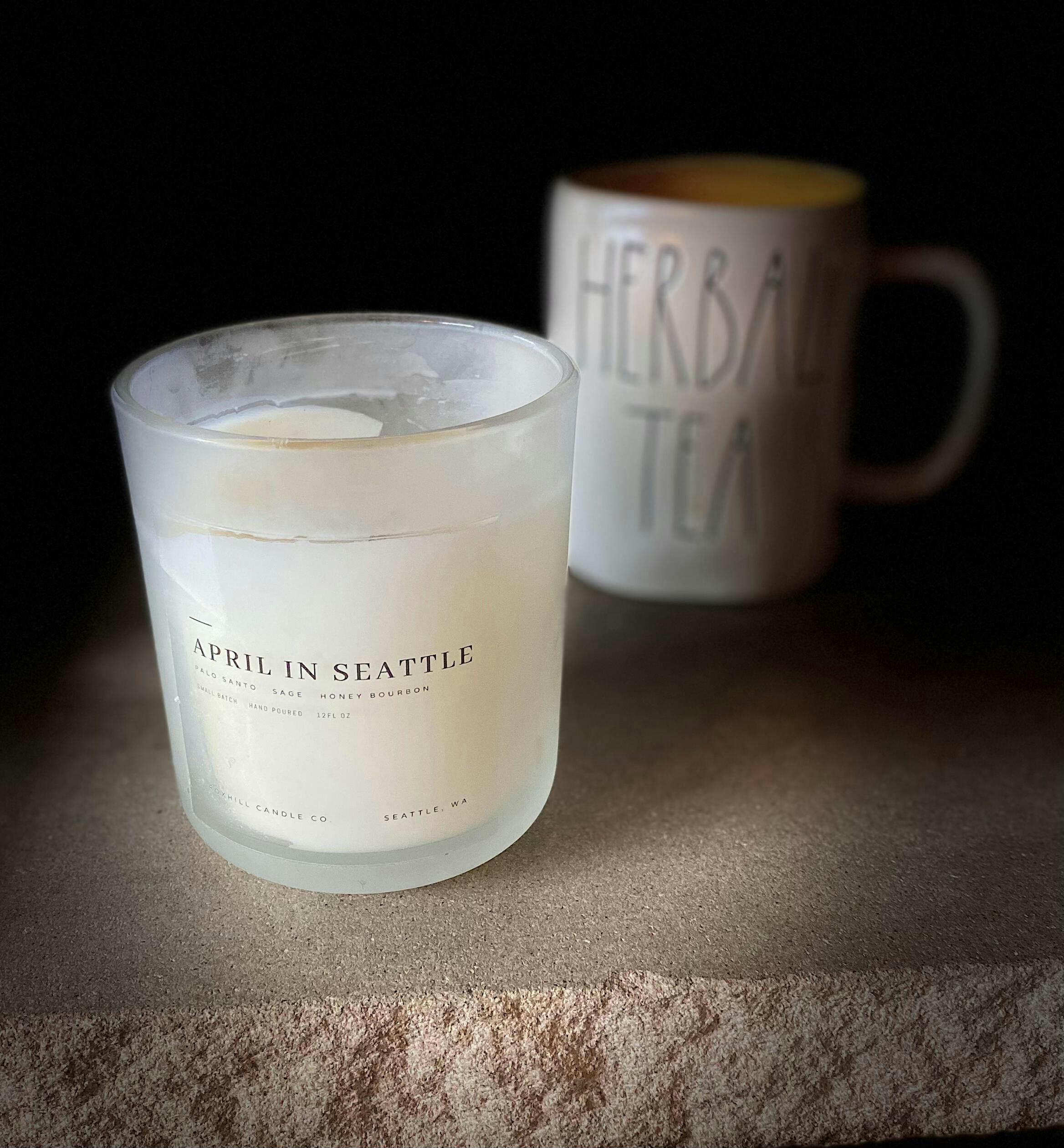 All natural beeswax and coconut crème wax blend, our signature scent of all natural Palo Santo/Sage and Honey Bourbon and a crackling wood wick in a frosted glass vessel.